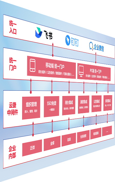 对协作平台提供支持服务,,,支持企业应用与协作平台对接,,包含组织同步、、、、消息集成、、、、待办集成等。。。。支持目前主流的协作平台:钉钉、、企微和飞书。。。